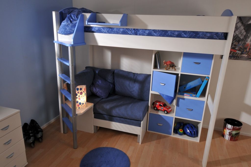 The Stompa Casa 7 High Sleeper Bed is another great space saver which comes in white lacquered pine or antique pine with blue, lilac, pink or white details to choose from. The pull-out sofa bed also includes integrated storage, and there are storage cubes within the footprint to minimise clutter.