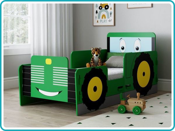 The Kidsaw Tractor Junior Toddler Bed is a fantastic choice for little ones who love the outdoors or anything with wheels. Shaped like a bright green tractor, it brings a sense of fun and adventure to bedtime, turning the end of the day into something to look forward to. Despite its playful design, it’s built with practicality in mind, sitting low to the ground and offering a sturdy frame that’s perfectly sized for toddlers.